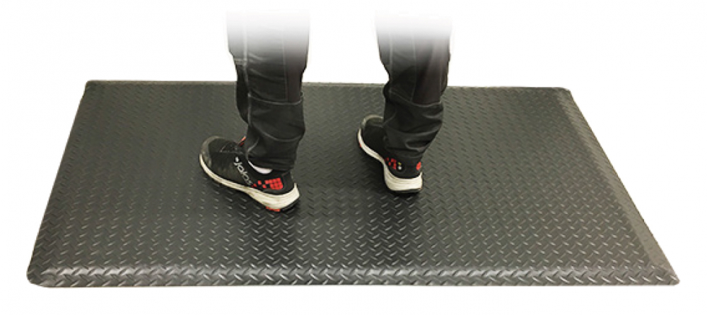 Demper belastning på føtter, knær og rygg ved å redusere trykket fra harde gulv.