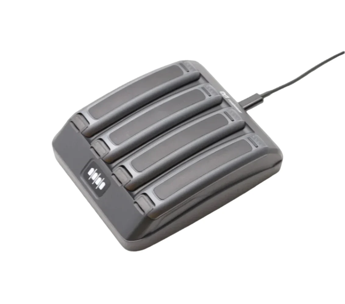 En ekstern lader som kan lade fire batterier samtidig for RealWear Navigator 500‑serien.